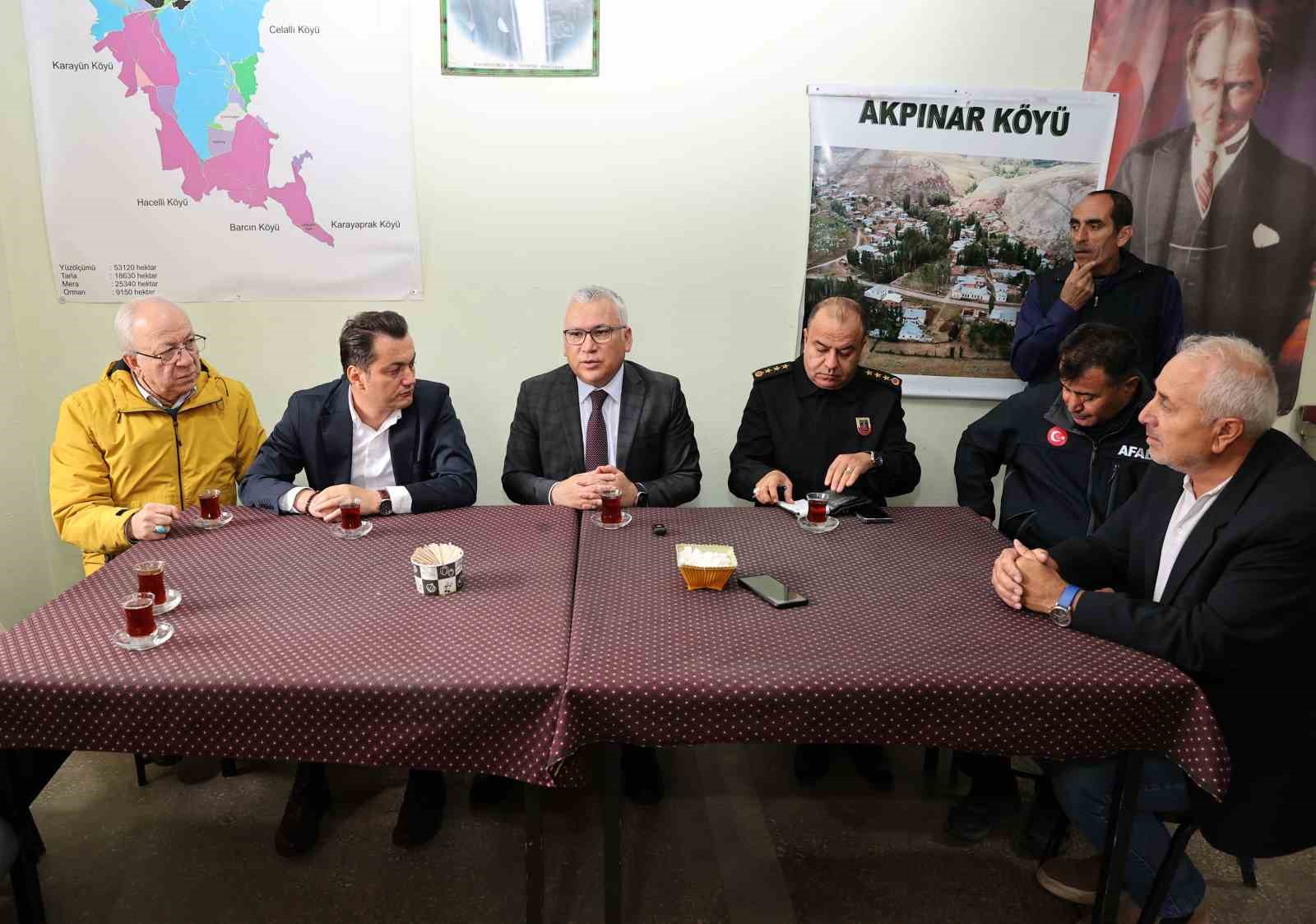 AFAD ziyaretinin ardından depremin merkez üslerinden birisi olan merkeze bağlı Akpınar köyünü ziyaret eden Vali Yılmaz Şimşek, köyde incelemelerde bulunarak yetkililerden bilgiler aldı. Vali Yılmaz Şimşek, devlet olarak her zaman vatandaşların yanında olduğunu ifade ederek, “Çok Şükür sıkıntısız atlattığımız bir deprem oldu. İki deprem yaşadık bildiğiniz üzere ama her ikisi de 5’in altında olduğu için tabi şanslıyız. 5’in altındaki depremlerde çok büyük bir olumsuzluk beklemiyoruz. Yine de halkımızın arsında bir panik yaşanıyor. Yine bazı evlerimizde çatlaklar oluşabiliyor. Saha çalışmalarımız ve taramalarımız devam ediyor. Ekiplerimiz sahada. Merkez üssü burası Akpınar köyü ve Hacıali köyü olarak bizlere bildirildi. Bizlerde merkez üssü burası olduğu için gelip tüm devlet birimlerimizle birlikte sizlere bir geçmiş olsun dilemek istedik. Bizlerde bir isteğinizin olup olmadığını sormak istedik. Öğrendiğim kadarıyla bazı evlerde çatlaklar var. Hasar olan evleri Çevre, Şehircilik ve İklim Değişikliği İl Müdürlüğü gelen arkadaşlarımız inceleyecekler. İnşallah ne gerekiyorsa yaparız. Devletimiz güçlüdür ve her zaman vatandaşımızın yanındadır. Her ne kadar seviye olarak şiddet olarak düşük bir deprem olsa da gördüğünüz üzere devlet olarak sizlerin yanındayız. Her zaman da yanınızda olacağız. Tekrar geçmiş olsun diyorum. Allah daha beterinden korusun, daha büyük afetlerden bizleri korusun.” ifadelerini kullandı.