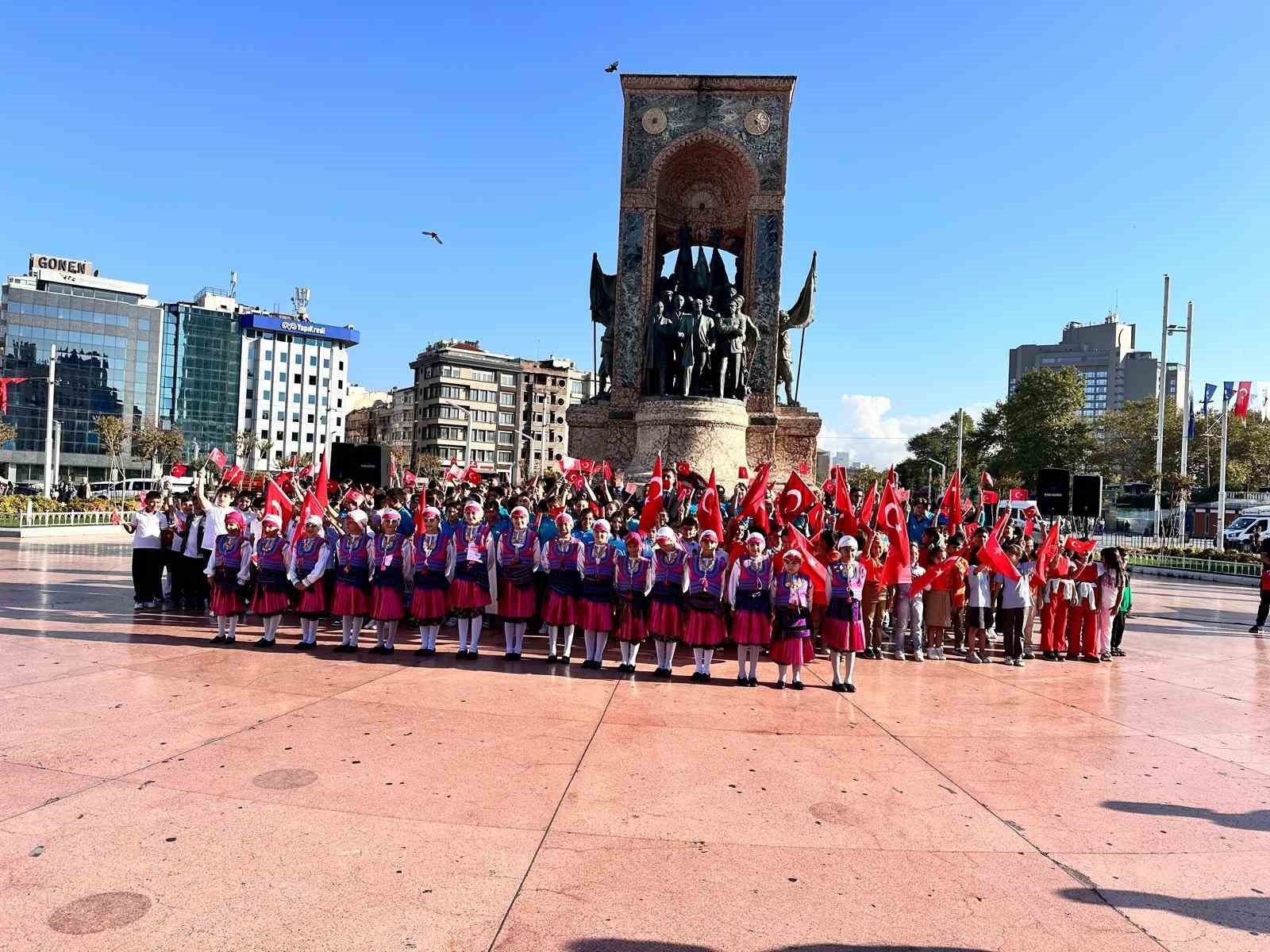 İstanbul Taksim Meydanı’nda yeni eğitim ve öğretim yılının başlaması nedeniyle İstanbul İl Milli Eğitim Müdürlüğü tarafından tören düzenlendi. Tören kapsamında Cumhuriyet Anıtı’na çelenk bırakıldı, öğrenciler çeşitli gösteriler sergiledi.