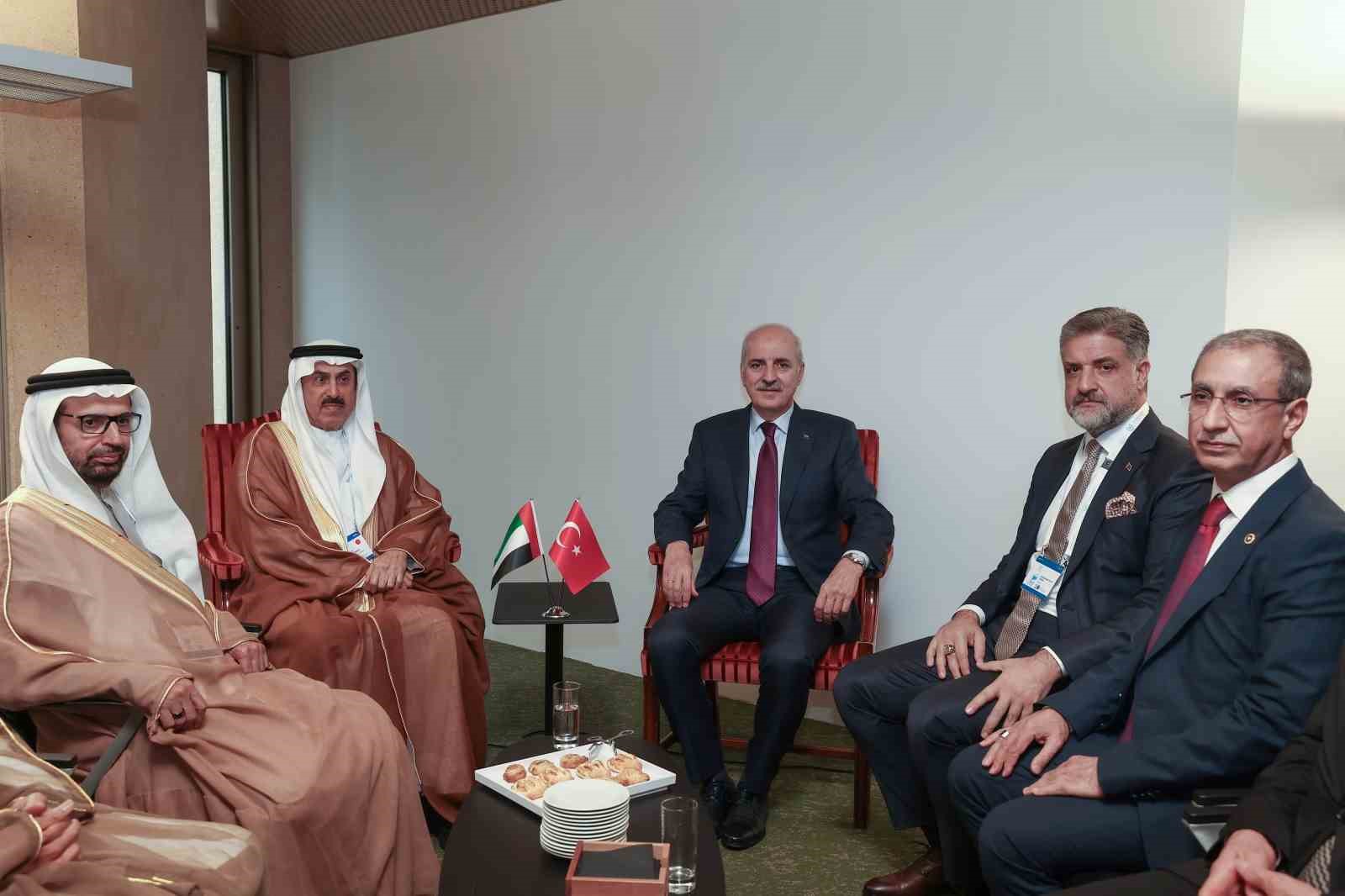 TBMM Başkanı Numan Kurtulmuş, Parlamentolar Arası Birlik (PAB) 149. Genel Kurulu’na katılmak üzere geldiği İsviçre’de Birleşik Arap Emirlikleri (BAE) Federal Konsey Başkanı Saqr Ghobash ile bir araya geldi.