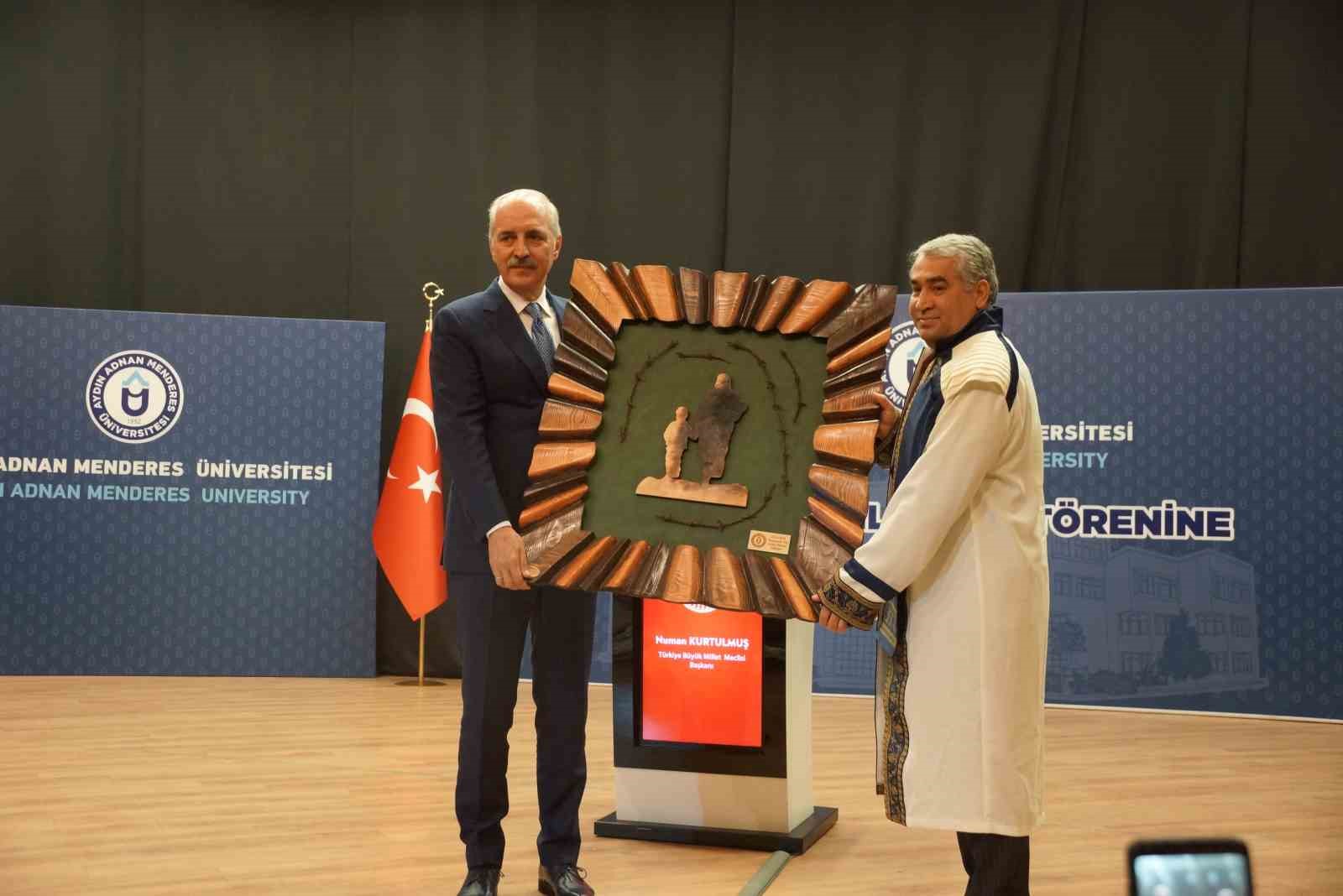 Adnan Menderes Üniversitesi 2024-2025 Akademik Yılı açılışı TBMM Başkanı Numan Kurtulmuş’un katıldığı programla gerçekleştirildi. Program saygı duruşu ve İstiklal Marşı’nın okunması ile başladı. Açılış konuşmalarının ardından Kurtulmuş’a üniversite yönetimi tarafından ahşap tablo hediye edildi.