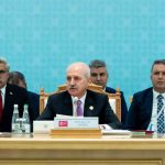 Dünyanın muhtelif ülkelerindeki vicdan sahibi halkların, adalet duygusunu kaybetmemiş her din ve her ırktan insanların bir insanlık cephesi oluşturduğunu, bu cephede birleşerek bu soykırıma “dur” dediğini ve hükümetlerini de bu çeteye karşı mücadele etmeye çağırdığını aktaran Kurtulmuş, “Ne yazık ki uluslararası kurumlar derin bir suskunluk içinde bu katliamı seyretmektedir. Uluslararası yapılar ve kurumlar artık dünya için taşınamaz bir yük haline gelmişlerdir. Bundan sonra önümüzdeki bu çok kutuplu dünyanın oluşacağı bu dönemde hep beraber, özellikle Türk-İslam dünyası, burada bir masa etrafına geldiğimiz dostlarımızla birlikte yeni bir küresel sistemin, yeni küresel kurumların, yeni küresel ilkeler ve yaptırımların vaktinin geldiğini ilan etmeli ve bu yönde çalışmalarımızı arttırmalıyız. Ülkelerin egemen eşitliğine, adil karar alma süreçlerine, insan hakları ve özgürlükleri konusunda talihsiz bir tutuma sahip yeni uluslararası kurum ve kuruluşlara ihtiyacımız var. Bizler bölge devletleri, bölge halkları olarak sahibi olduğumuz maddi ve manevi zenginlikler, genç nüfusumuz ve dünyanın iki yakasını birleştiren bir coğrafyada bulunmanın verdiği büyük avantajlarımız dolayısıyla önce bölgemizde sonra dünya ölçeğinde adil bir küresel sistemin kurulması için seferber olmalıyız” açıklamasını yaptı.