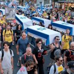 İsrail ve Hamas arasında esirlerin takası da dahil Gazze Şeridi’nde ateşkese ilişkin anlaşmaya yönelik diplomatik çabalar devam ederken, İsrail’in başkenti Tel Aviv’de Hamas ile ateşkes anlaşması yapılması için 5 gündür hükümet karşıtı protestolar sürüyor. Protesto, esirlerin yakınlarının da katılımıyla Habima Meydanı’ndan Gazze Şeridi’nde esir tutulurken hayatını kaybeden 27 esiri temsil eden tabutlarla düzenlenen sembolik bir cenaze töreni ile başladı.