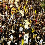 Tel Aviv’deki İsrail ordusu karargahı önüne gelen yaklaşık 2 bin kişi, “Hepimiz kan hükümetinin rehineleriyiz” ve “İmzalanmayan bir anlaşma herkesi öldürür” sloganlarını attı.
