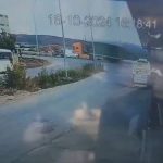 Bursa’nın İnegöl ilçesinde hafif ticari araçla tırın çarpıştığı kazada sürücüler yaralandı. Kaza anı bir iş yerinin güvenlik kamerasına yansıdı.