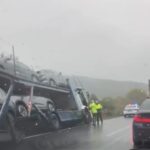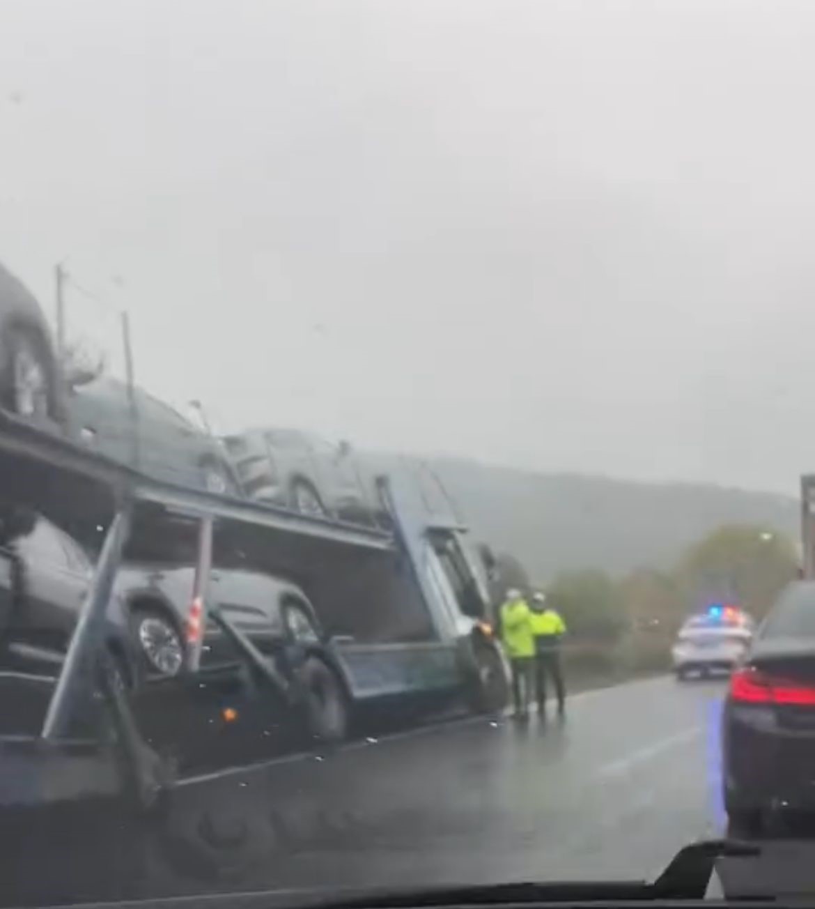 Bursa’nın Kestel ilçesi Ümitalan Rampası mevkiinde TOGG yüklü tır seyir halindeyken yağışlı havanın etkisiyle kontrolden çıktı. Savrulan araç yol kenarında mahsur kalırken, tır sürücüsü 112 Ekiplerinden yardım istedi. İhbar üzerine olay yerine trafik ekipleri sevk edilirken, araçlar ise çekici yardımı ile kurtarıldı. Şans eseri devrilmeyen tırdaki araçlar ise hasar görmeden tekrar yola koyuldu.