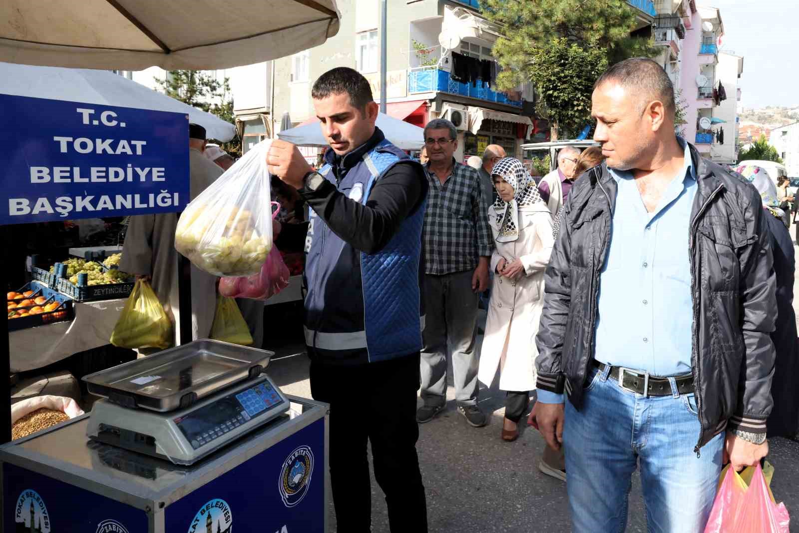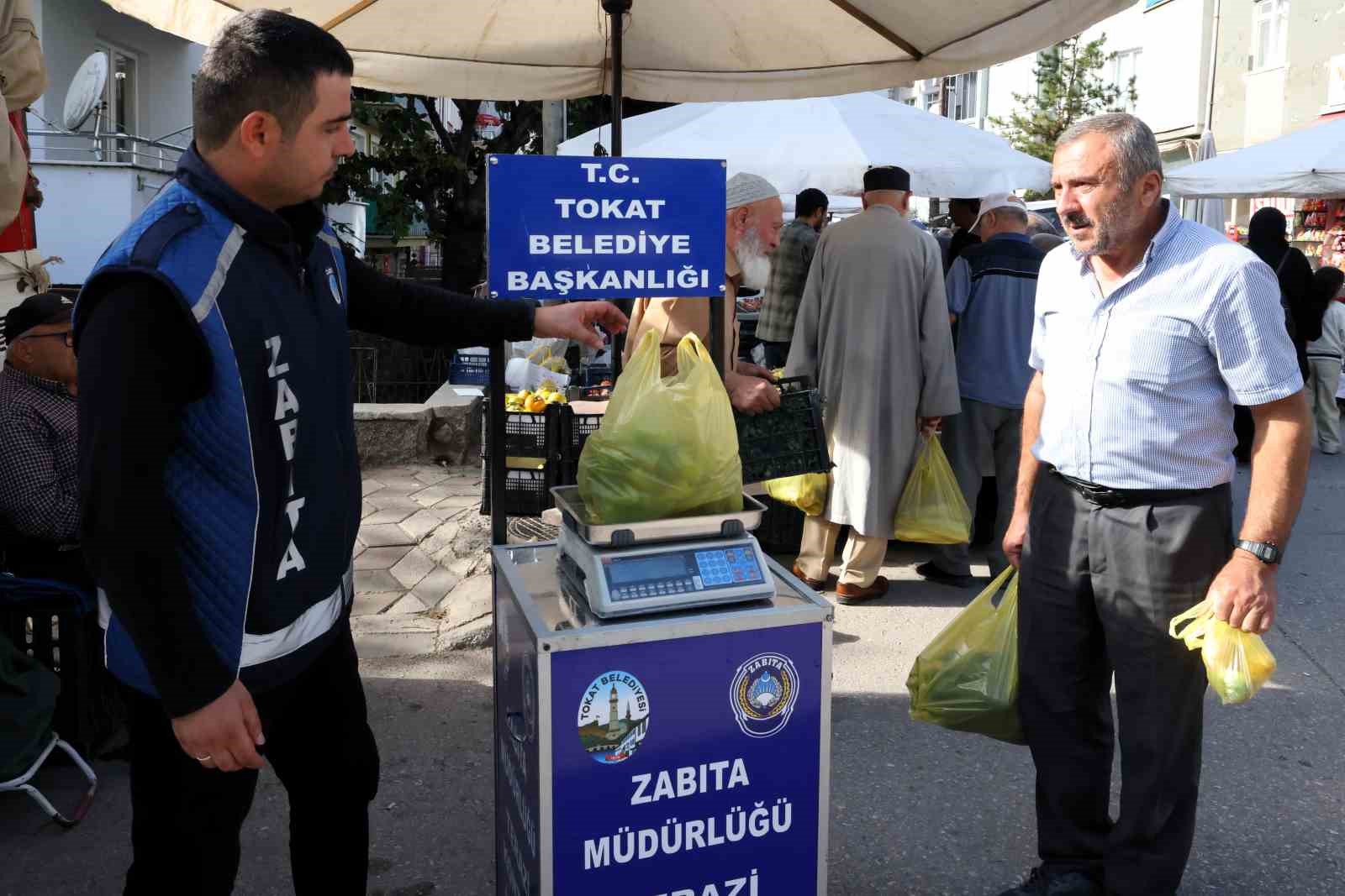 Tokat’ta zabıta ekipleri pazar yerlerinde gramaj şüphesine karşı denetim gerçekleştirdi.