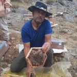 Yediden yetmişe tüm aile fertleriyle arıcılık faaliyeti gerçekleştiren arıcı İbrahim Tontul, arılıkta sahiplendirdiği kovanların açımında cep telefonlarıyla çekimler yaparak çıkan balları sahiplerine ulaştırıyor. Bal hasadı sırasında arılığında açıklamalarda bulunan İbrahim Tontul, “Sahiplendirdiğim kovan Tuğba hanımın kovanı. İnşallah 3 aydır beklediğimiz an, bal alabilecek. Üç dört aydır bu kovana bakmış değiliz. Şimdi kovanı açıp durumuna bakacağız, bal çıkacak mı göreceğiz. Bulunduğumuz bölge 2 bin, 2 bin 500 rakım arası bir bölgedeyiz. Burada flora çeşitliliği çok fazla. O yüzden bu taraflara arıyı getirme sebebi buluyorum. Buranın bal durumu da kalitesi biraz daha farklı oluyor. Bu yılki bal hasadı önceki yıllara göre normalinden aşağı seviyelerde. Rakım düşük olan yerlerde bal aşırı derecede yoktu ama bizim burası maşallah gayet güzel. Bu yüksek rakımlı yörede dört bölgede arımız var ve bölgedeki arılığımızda ayı kardeşimiz için bir tane de ona sahiplendirdik. Doğaya saygımız olsun bir tane de o yesin diye bağrımızdan koptu ona ayırdık ama o altı tane kovan yemiş. Komple arılarımızı buraya kaldırdık” dedi.