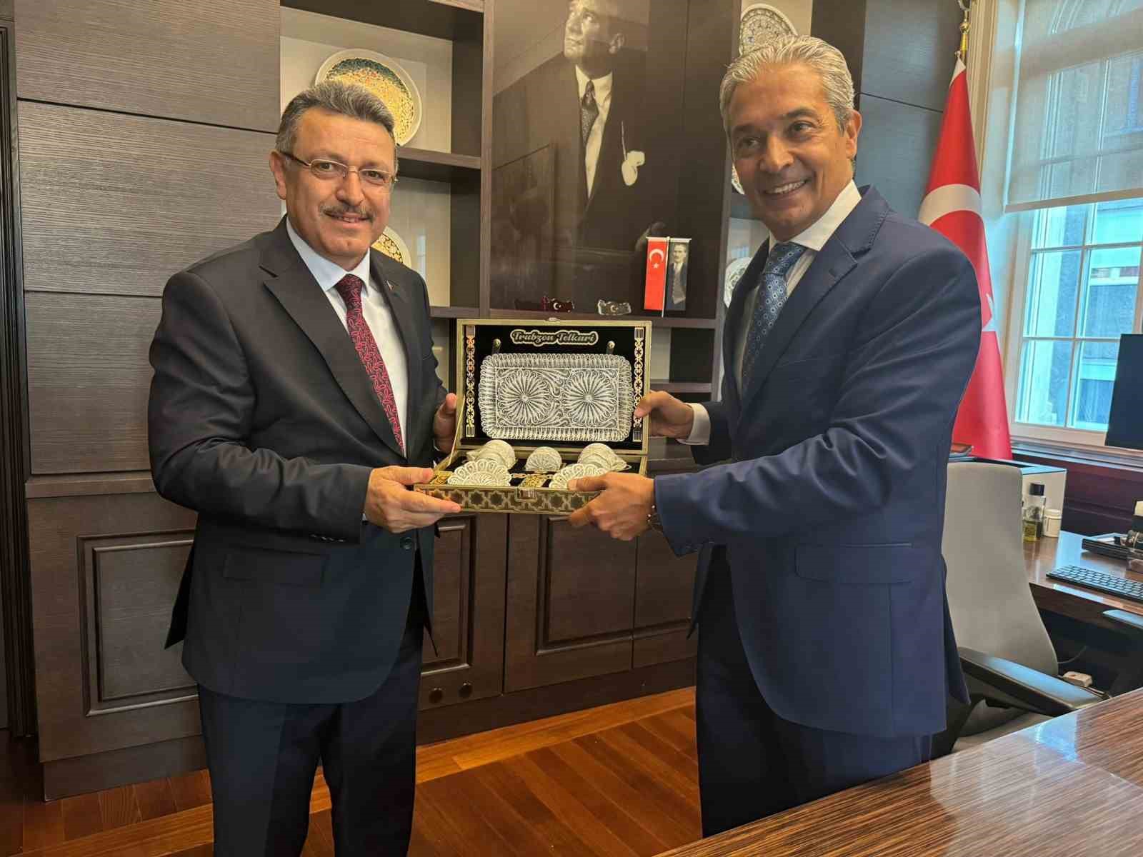 Anne tarafından Trabzonlu olduğunu belirten Büyükelçi Aksoy’a, adaşı Hami Mandıralı’nın imzaladığı Trabzonspor forması hediye edildi.