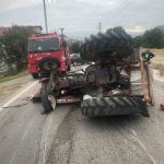 Bursa’da okula giderken servis aracından indirilen öğrencilerin otostop çekerek bindiği traktör devrildi. Kazada yaralanan traktör sürücüsü ve 5 öğrenci ambulanslarla hastaneye kaldırıldı. Yaşanan kaza anı ise saniye saniye güvenlik kameralarına yansıdı.