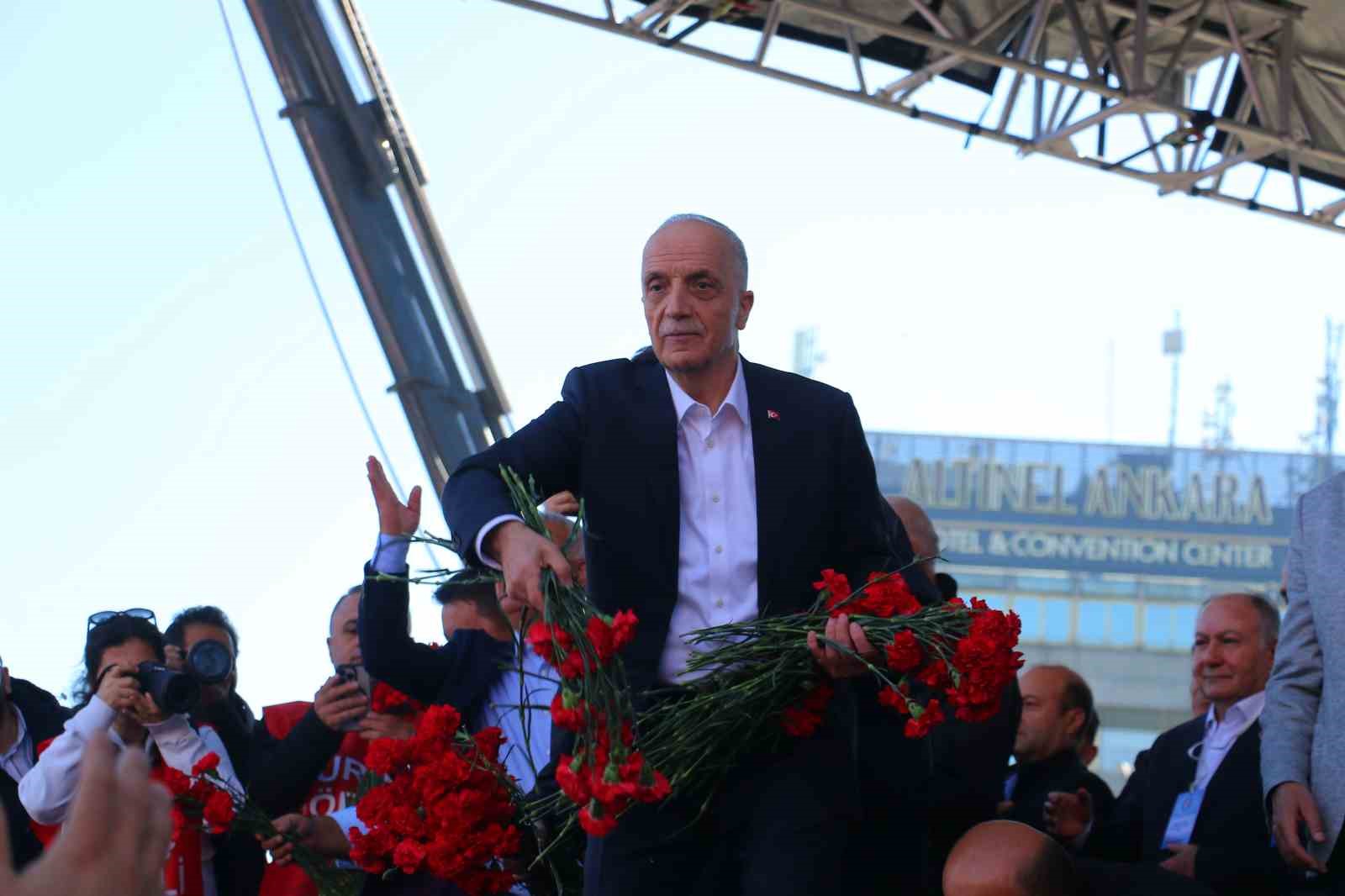 Türk-İş’in tek derdinin geçim olduğunu sözlerine ekleyen Atalay, “Türk-İş, Türk-İş’in üyeleri, Türk-İş kurulduğu günden bugüne kadar bu sloganı hiç terk etmedi. Ailemizle mükellefiz, geçindirmek mecburiyetindeyiz, geçindirmek mecburiyetindeyiz. Öyle bir noktaya geldik ki bu ücretlerle ayı tamamlamayı bırak 15 gün geçinemiyoruz. Bununla ilgili yeni bir yasal düzenlemeye ihtiyaç var. Emeklinin ihtiyacı var, asgari ücretlinin ihtiyacı var. Biz yük değiliz, enflasyonu biz buralara getirmedik” ifadelerini kullandı.
