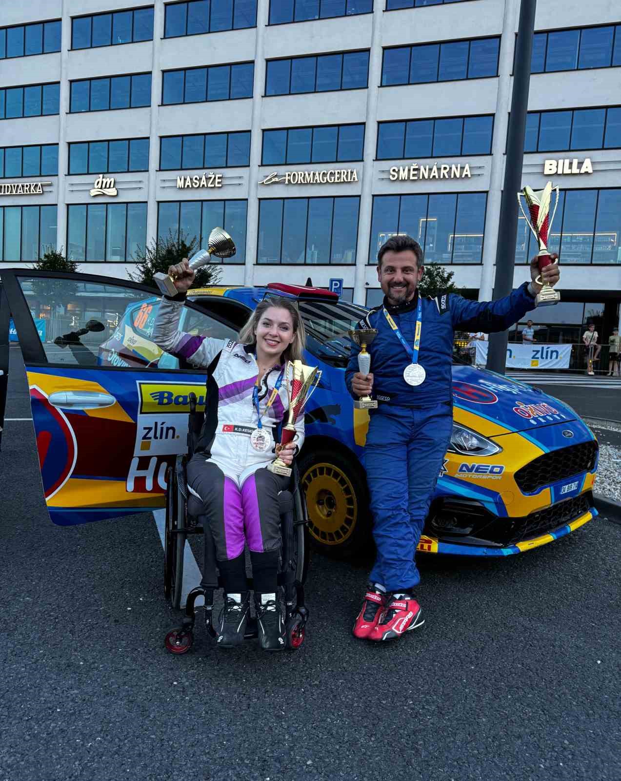 Türkiye’nin ilk engelli kadın ralli pilotu olan ve bugüne kadar birçok yarışa katılarak önemli derecelere imza atan Osmangazi Belediyesi Yazı İşleri Müdürlüğü personeli Kübra Denizci Keskin, dünyanın tek engelli kadın ralli pilotu unvanı ile çıktığı Avrupa yollarında adeta destan yazdı. Avrupa Ralli Şampiyonası’nın (ERC) en zorlu ayaklarından biri olarak kabul edilen Barum Czech Rally Zlin’de yarışan başarılı pilot, 112 otomobilin katıldığı organizasyonda kadın pilotlar arasında birinci, Rc 5 kategorisinde ise üçüncü olarak çifte kupa kazandı. Bu yıl Avrupa Ralli Şampiyonası’nın en uzun yarışı olarak kayda geçen Barum Czech Rally Zlin, toplam 193 bin 59 kilometrelik özel etap ve 867 bin 33 kilometrelik toplam mesafesiyle pilotlar için büyük bir zorluk oluşturdu. Kübra Denizci Keskin, bu zorlu parkurlarda gösterdiği performans ve kararlılıkla bir kez daha yeteneklerini kanıtladı. Sadece Türkiye’de değil, dünya çapında da adından söz ettiren başarılı pilot, uluslararası arenada bir kez daha ilham kaynağı olarak Bursa’ya büyük bir gurur yaşattı. Osmangazi Belediyesi Yazı İşleri Müdürlüğü personeli olan Kübra Denizci Keskin, Avrupa’daki yarışta kazandığı çifte kupa ile birlikte Osmangazi Belediye Başkanı Erkan Aydın’a ziyarette bulundu.