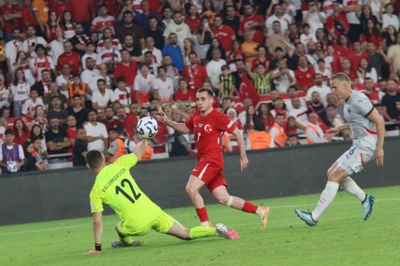 66. dakikada gelişen milli takımın atağında Kerem Aktürkoğlu’nun ceza sahası dışı sol çaprazından vuruşunda kaleci Valdimarsson topu yakın köşeden çıkardı.