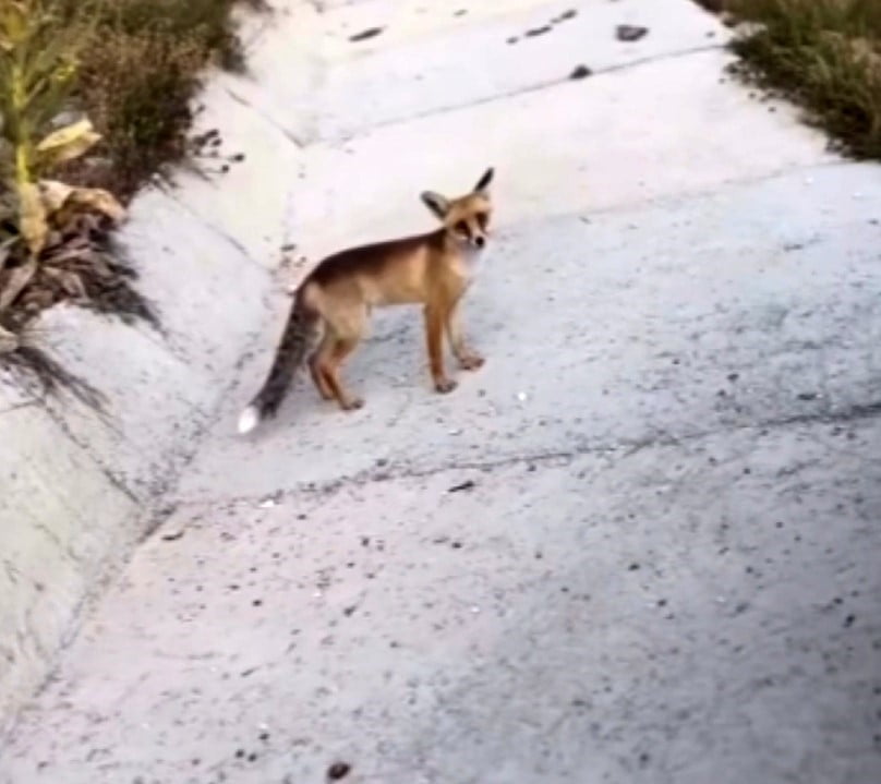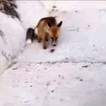 Bursa’da Uludağ Yolu’nda aç kalan tilkiyi vatandaşlar besledi.