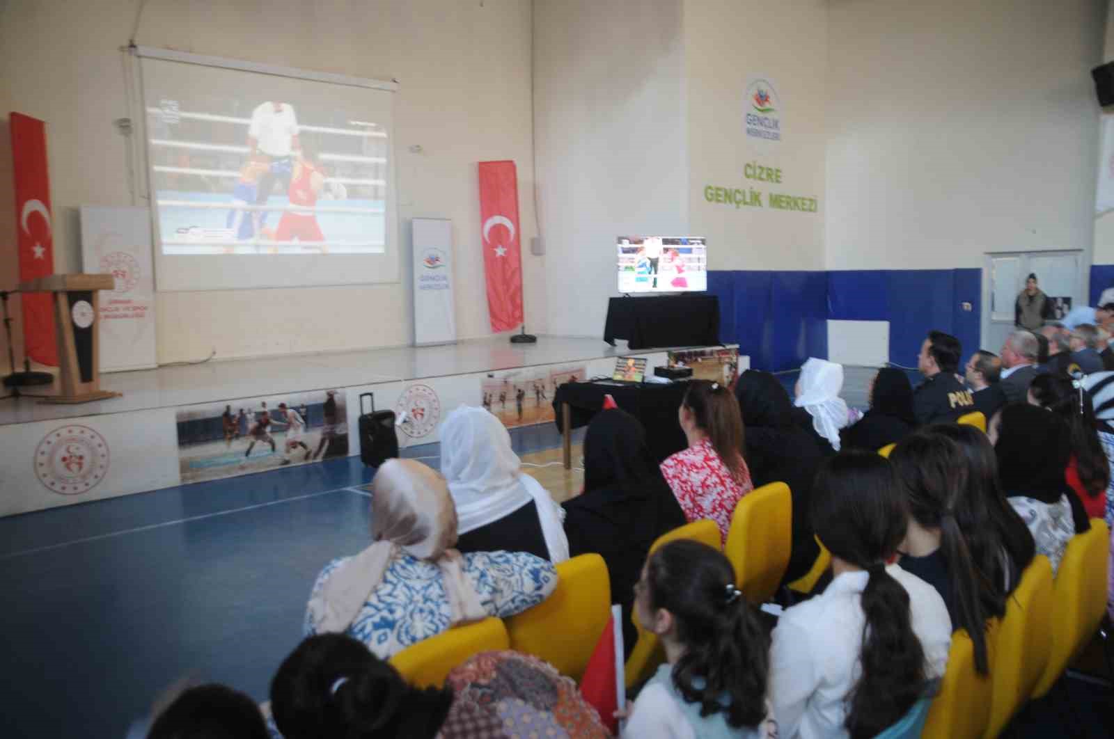 Cizre’de yaşan milli boksör Nurselen Yalgettekin’in, Bulgaristan’ın Sofya kentinde oynadığı Avrupa Boks Şampiyonası final müsabakası Cizre Gençlik Merkezi’nde kurulan dev ekrandan izlendi.
