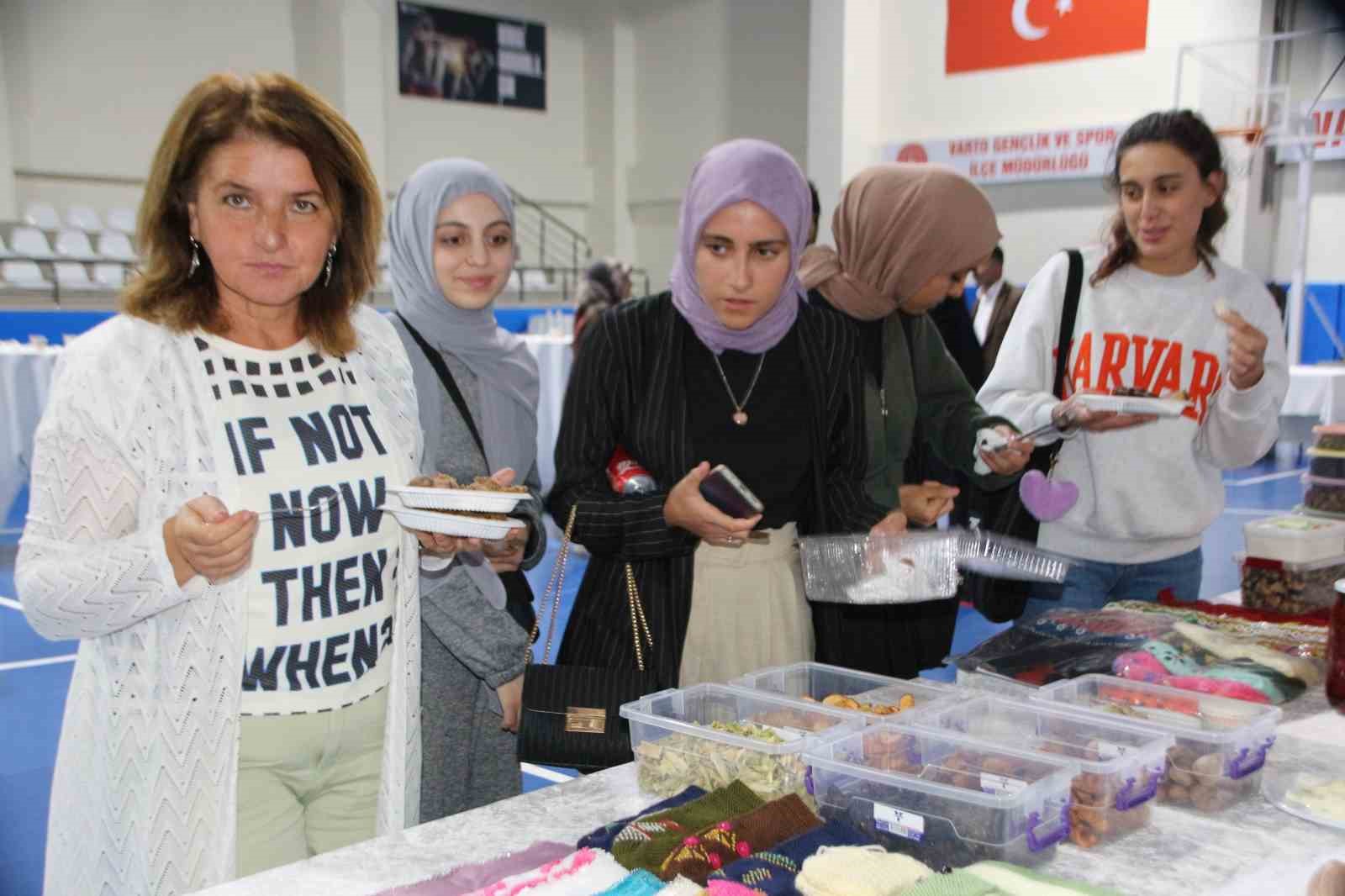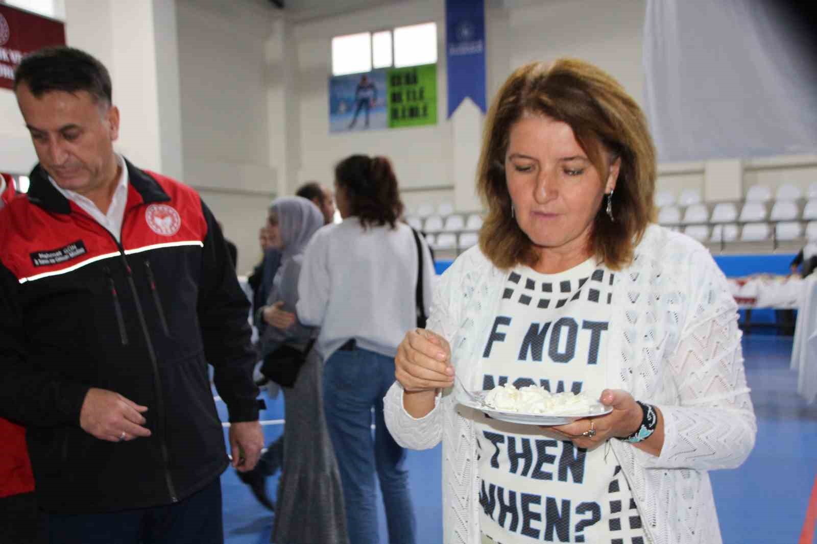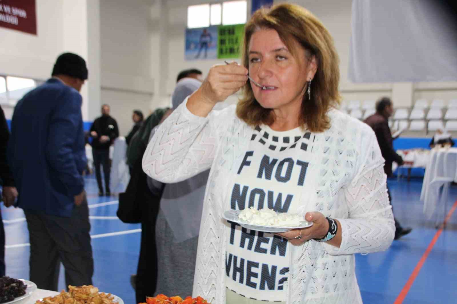 Yarışmanın ardından her üç köyünden üretilen hayvansal ve bitkisel ürünlerin yanı sıra el işi ürünlerin sergilendiği stantlar gezilerek protokol tarafından mayalanmış peynir kesildi.