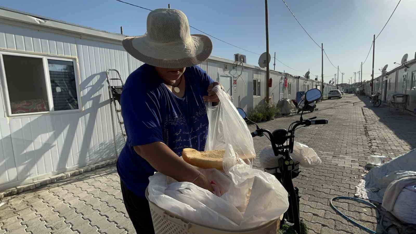 Hatay’da yaşayan Münevver Özkoç, fırından satın aldığı ekmekleri konteyner kentte satarak elde ettiği geliri üniversitede okuyan evladının eğitimi için harcıyor. Ekmek servisiyle hasta ve yaşlı olan vatandaşların dualarını da alan Özkoç, fırından 8 TL’ye aldığı ekmekleri 10 TL’ye satarak 2 TL kar elde ediyor.