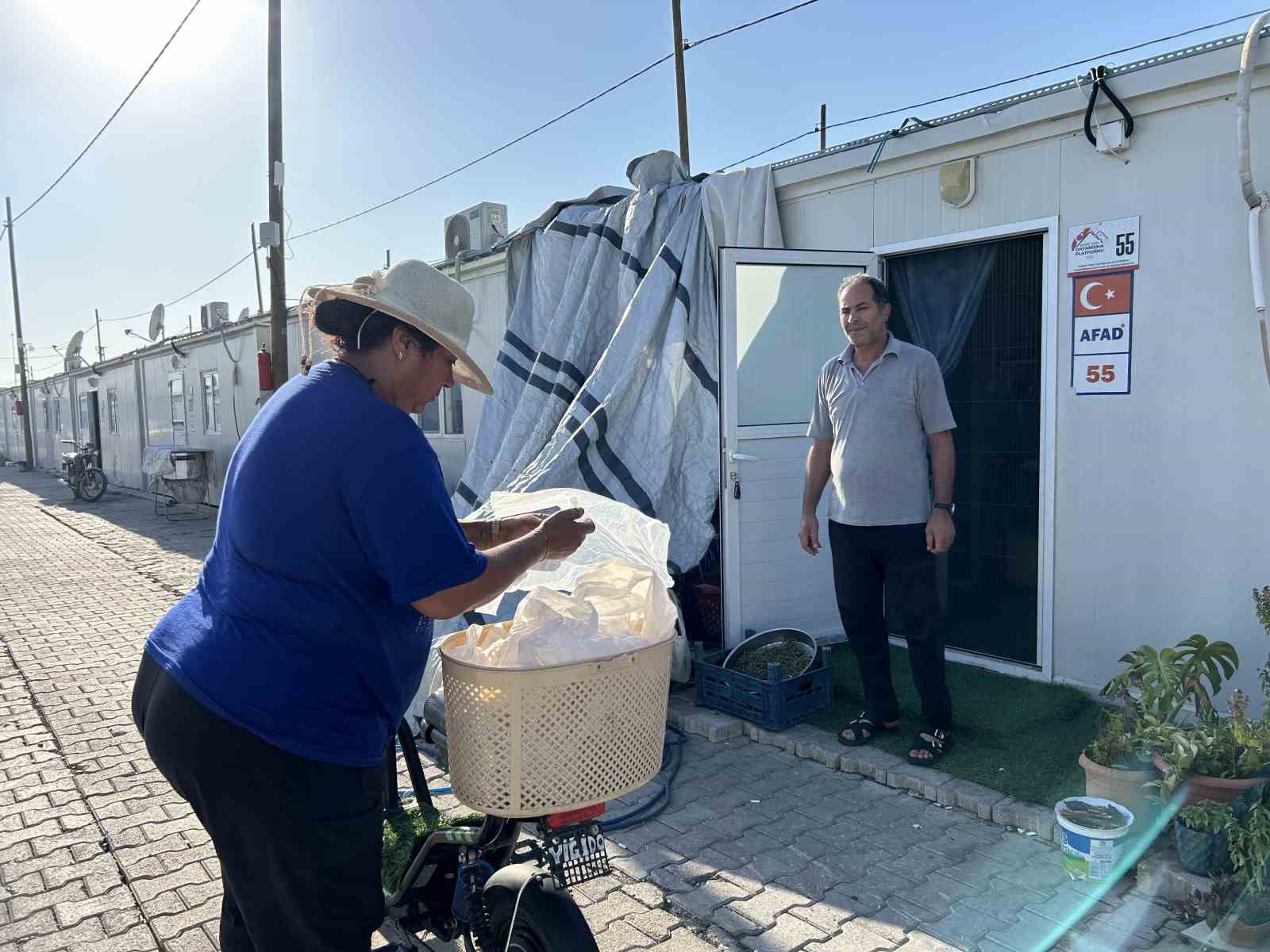 Kahramanmaraş merkezli depremlerde en çok yıkıma uğrayan Hatay’da 25 bine yakın insan vefat etmiş binlerce bina yerle bir olmuştu. Deprem sonrası vatandaşlar konteyner kentlerde yaşamaya başlamıştı. İskenderun ilçesinde asrın felaketi sonrası konteyner kentte yaşamaya başlayan 48 yaşındaki Münevver Özkoç, üniversitede okuyan evladının eğitimi için elektrikli motosikletiyle konteyner içinde ekmek satmaya başladı. Fırından 8 TL’ye satın aldığı ekmekleri 10 TL’ye satarak 2 TL kar elde eden vefakar anne azmi ve çabasıyla takdir topluyor. Ekmek sattığı hasta ve yaşlı vatandaşların duasını da alan Özkoç, komşularından destek görüyor.
