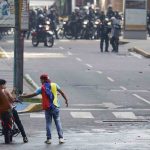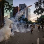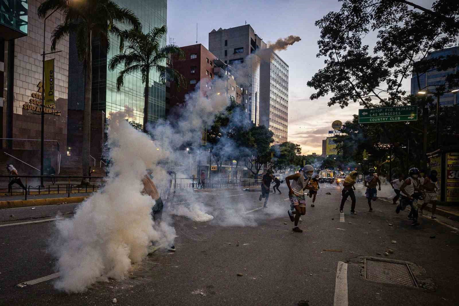 Başkent Karakas’ta başkanlık sarayı Miraflores yakınlarında toplanan kalabalığa göz yaşartıcı gazla müdahale eden polis, kalkanlar ve coplarla bariyer kurdu.