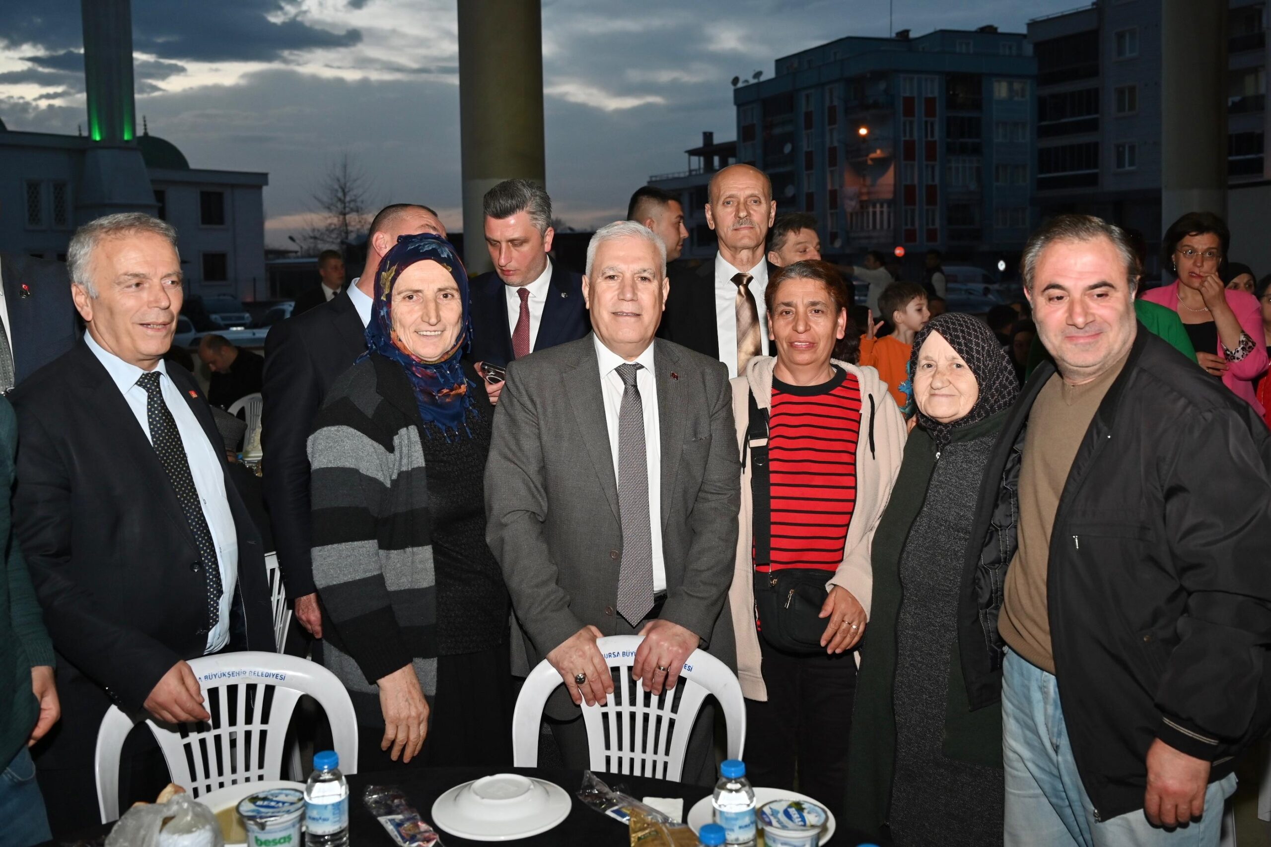 Bursa Büyükşehir Belediye Başkanı Mustafa Bozbey, Ramazan ayının paylaşma ve dayanışma ruhunu düzenledikleri programlarla artırarak devam ettirdiklerini söyledi. Her gün farklı bir ilçedeki iftar sofralarında vatandaşlarla bir araya geldiklerini belirten Başkan Mustafa Bozbey, iftar saatinde 15 ayrı noktada ise iftariyelikler dağıttıklarını anlattı. Gürsu’da birçok altyapı ve üstyapı hizmetini sürdürdüklerini dile getiren Başkan Bozbey, bir taraftan halkın ve muhtarların ilettiği talepleri yerine getirdiklerini, diğer taraftan Gürsu Belediyesi ile birlikte ortak projeleri hayata geçirdiklerini ifade etti. Her yaştan insanın gülümsediği bir Gürsu istediklerini söyleyen Başkan Bozbey, “Yakın zaman içerisinde Yakın Çevre Yolu’nu direk Gürsu’nun içine bağlayacağız. Böylece Ankara Yolu rahatlamış olacak. Gürsu TOKİ’ye giden yolla ilgili şikayetler olduğunu biliyorum. TOKİ’de yaşayan insanlarımızın kısa sürede ve güvenli bir şekilde kente ulaşmasını sağlayacak yolu kısa zamanda yapacağız” dedi.