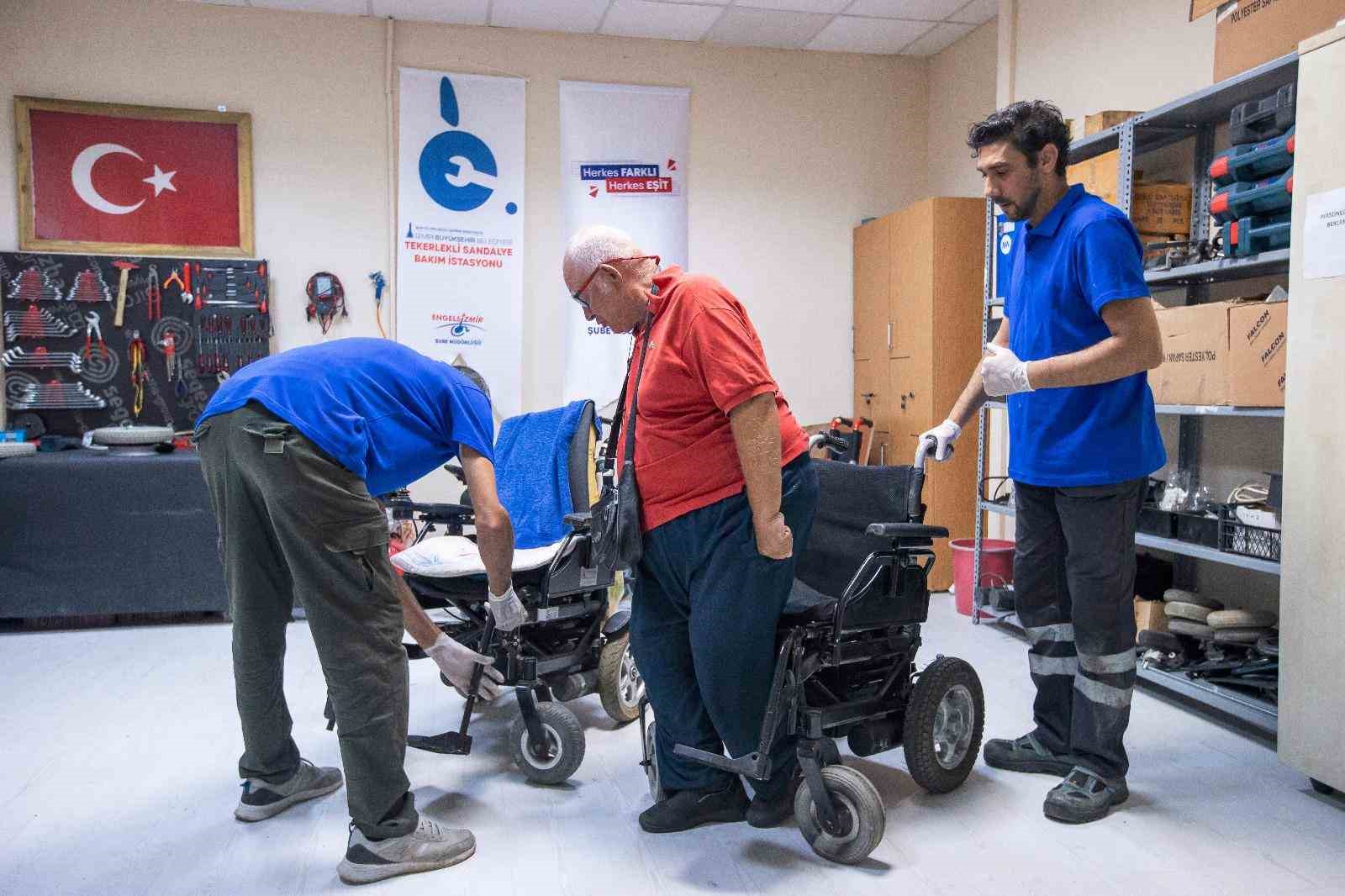 İzmir Büyükşehir Belediyesi Engelli Çalışmaları Şube Müdürlüğü Tekerlekli Sandalye Bakım Onarım İstasyonu, engelli yurttaşların arızalanan tekerlekli sandalyelerine tıpkı bir hastane gibi tamir ve bakım hizmeti veriyor. Yamanlar yangınında tekerlekli sandalyesi hasar alan Fatma Arslan kısa süre içinde sandalyesine kavuşurken, istasyondan ücretsiz bakım, tamir ve şarj hizmeti alan diğer engelli bireyler İzmir Büyükşehir Belediyesi’ne teşekkür etti.