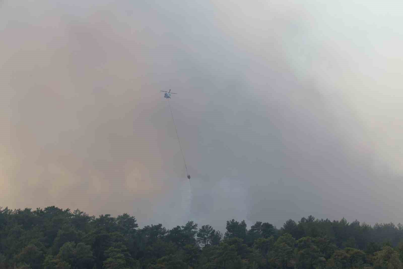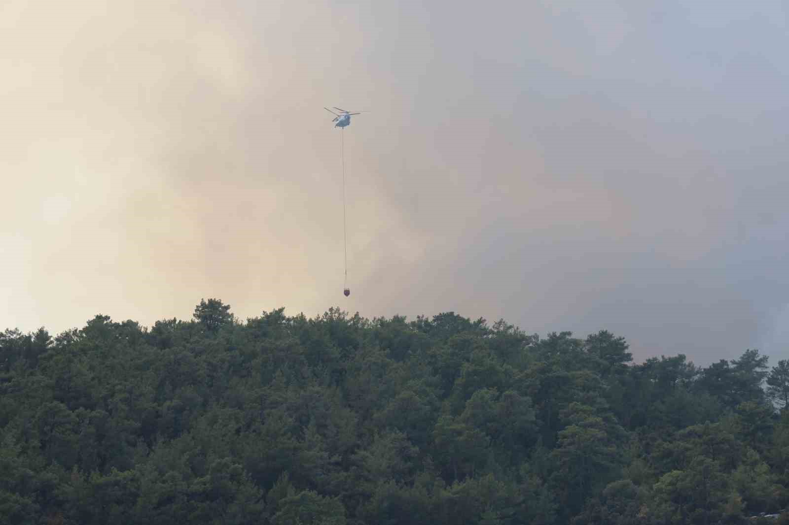 Muğla’nın Menteşe ilçesinde sarp arazide ormanlık alanda çıkan yangın rüzgarın etkisi ile büyürken, yangına havadan 9 helikopter ve 6 uçak müdahale ediyor.