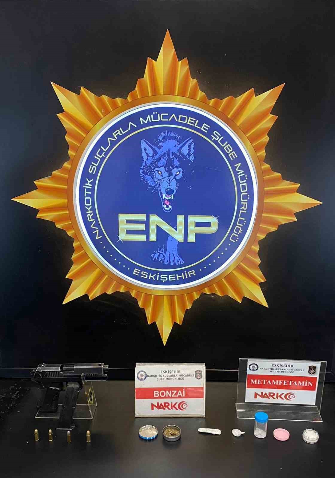 Eskişehir Emniyet Müdürlüğü Narkotik Suçlarla Mücadele Şube Müdürlüğünce uyuşturucu satıcılarına yönelik operasyon yapıldı. Ekiplerce yapılan operasyon kapsamında; 817 gram esrar, 210 gram bonzai, RLÜGU, 9.43 gram metamfetamin maddesi, 1 adet ruhsatsız tabanca ve 4 adet fişek ele geçirildi. Çalışmalarda yakalanan 5 şüpheli çıkarıldıkları mahkemece tutuklanarak cezaevine gönderildi.
