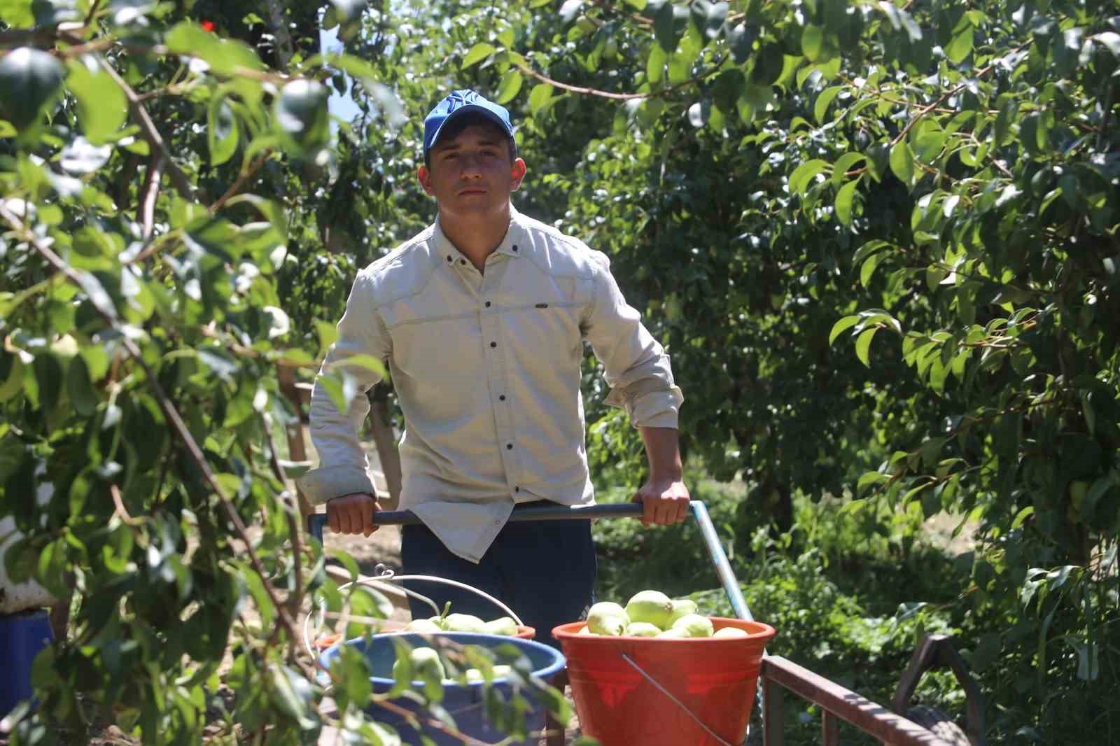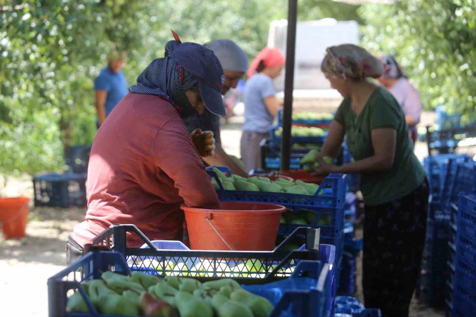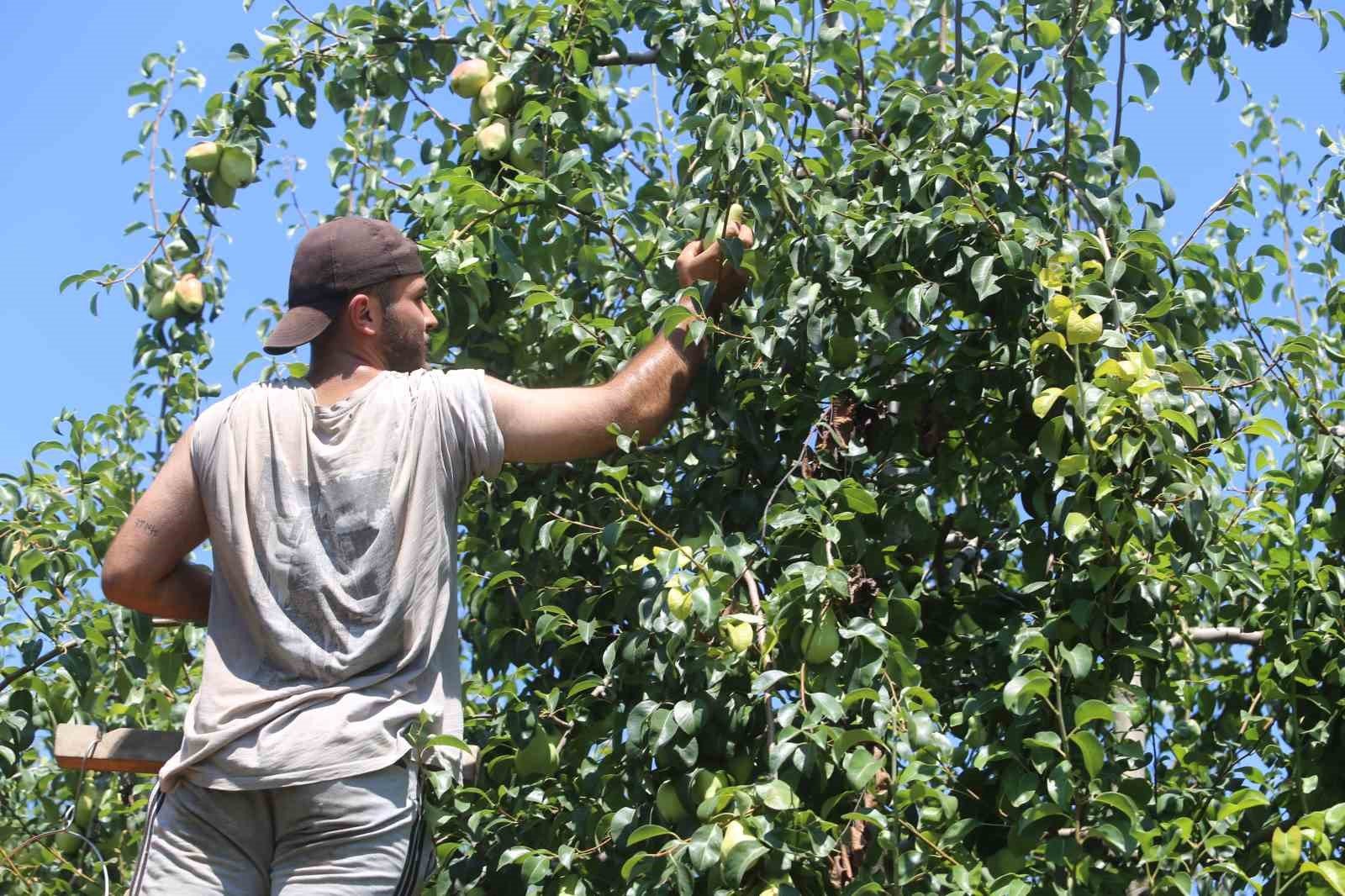 İşçi bulmanın zor olduğunu kaydeden Uğur, 40 dereceleri bulan sıcaklıklara rağmen üniversite öğrencilerinin tarlada hasada destek verdiklerini söyleyerek, “Normalde çalıma saatlerimiz 8.00-17.00 ama biz 6.00-15.00 arasında çalışıyoruz. Yapılan anlaşmaya göre farklı saatlerde de çalışan var. Armudun budaması eylül ayında başlayıp nisan ve mayıs ayına kadar devam ediyor. Şubat ayında da ilaçlaması başlıyor. Armudun bu zamana kadar gelmesi çok zorlu bir süreçten geçiyor. Armut ağacının yetişmesi aşağı yukarı 30 yıl sürüyor. 100 dönüm kadar Santa Maria hasadı yapılıyor. 20’şer kişiden oluşan 3 grup halinde çalışıyoruz. 5-6 kişi günde 20 ton mal topluyor. İşçi bulmak biraz zor. Daha doğrusu işini iyi yapan yok. Üniversite öğrencileri bize destek oluyor. İşçilerin aldığı para çalışma saatine göre değişiyor. 900 liraya da çalışan da var, bin liraya da çalışan var. Armudun kilosunun fiyatı tarladan çıkma büyük boy 35 lira, küçük boyları ise 17-18 lira arası” diye konuştu.