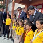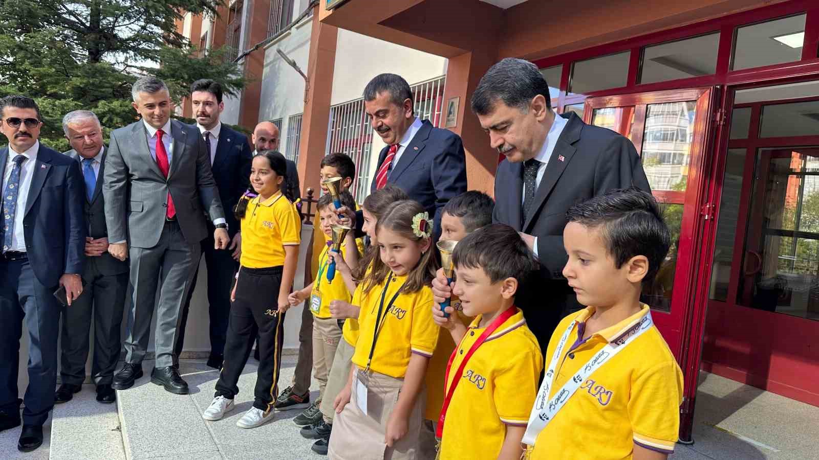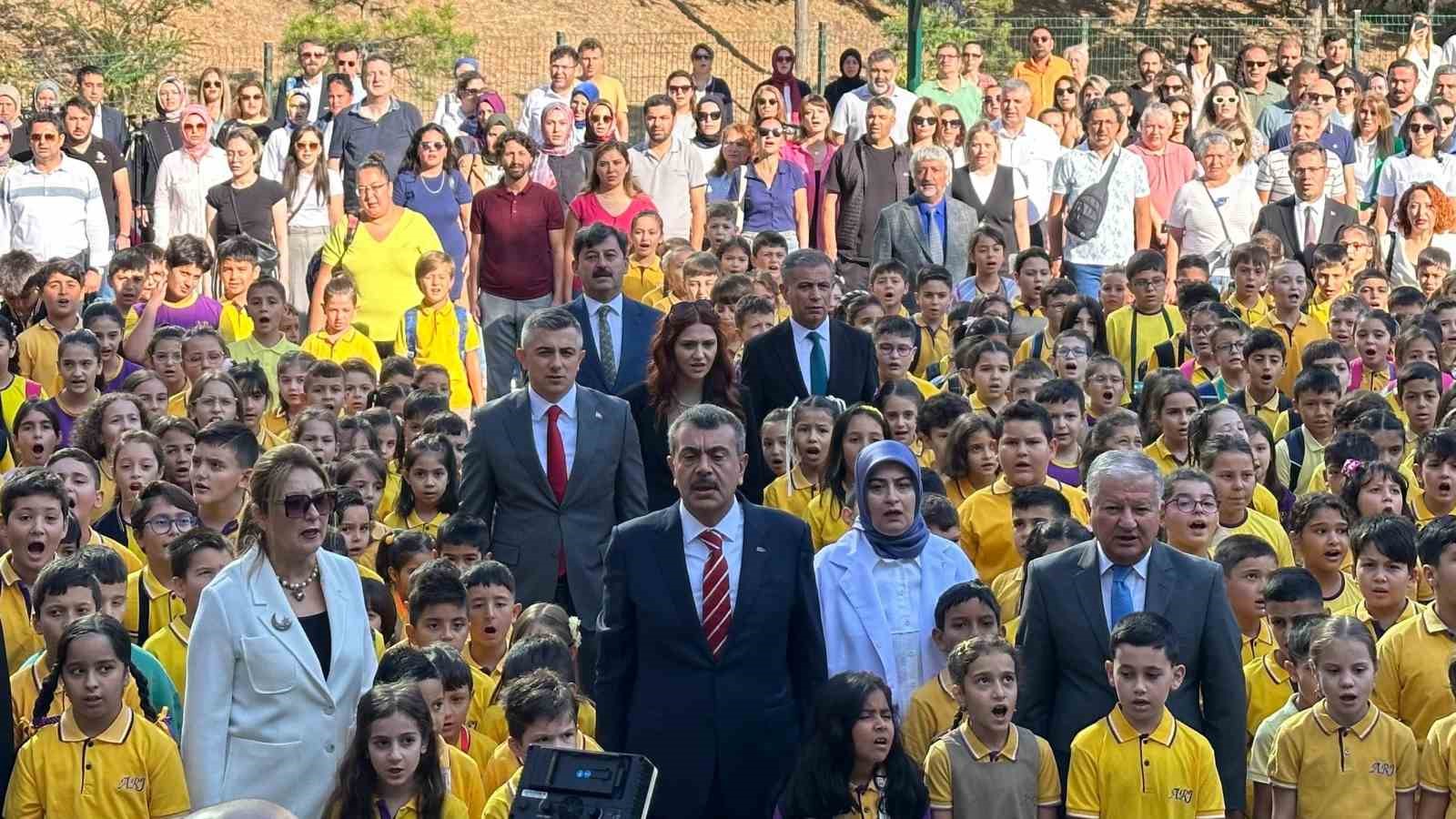 Yeni eğitim- öğretim yılı kapsamında ülke genelinde yaklaşık 20 milyon öğrenci ve 1 milyon 250 binin üzerinde öğretmen, okullarda bir araya geldi. Ankara’da Çankaya ilçesindeki Arjantin İlkokulu’nda da öğrenciler, veliler ve öğretmenler ilk ders heyecanı yaşadı. Milli Eğitim Bakanı Yusuf Tekin ile Ankara Valisi Vasip Şahin, 2024-2025 eğitim öğretim yılı için yapılan açılış törenine katılarak öğrencilerin ilk ders heyecanına ortak oldu. Okulun bahçesinde hazır bulunarak sıraya giren öğrencilere, Tekin ile Şahin eşlik etti. Bayrak töreni öncesi Tunceli’nin Ovacık ilçesinde görev esnasında meydana gelen trafik kazasında şehit olan askerler için bir dakikalık saygı duruşunda bulunuldu. İstiklal Marşı’nın okunmasının ardından okuldaki yeni eğitim öğretim yılının ilk ders zilini çalan Bakan Tekin, sınıfları ziyaret ederek öğrenci ve öğretmenlere başarı diledi. 1’inci sınıflardan oluşan bir dersliğe giren Bakan Tekin, sıraya oturarak ‘Çanakkale’den Gazze’ye Bağımsızlık Ruhu ve Vatan Sevgisi’ temasıyla hazırlanan açılış dersine katıldı.