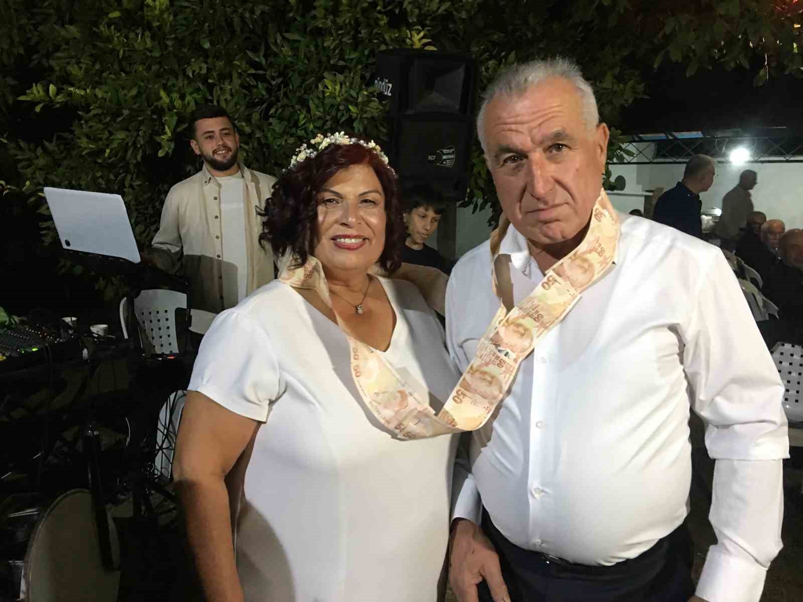 Yılmaz çifti, 42 yıl sonra hayalini kurdukları düğünü yapmanın verdiği mutluluğu dostlarıyla paylaştı. Gece boyunca süren müzik eşliğinde oynayıp eğlenen davetliler, çiftin mutluluğuna ortak oldu. Düğüne katılan davetliler Yılmaz çiftine takı taktı.