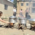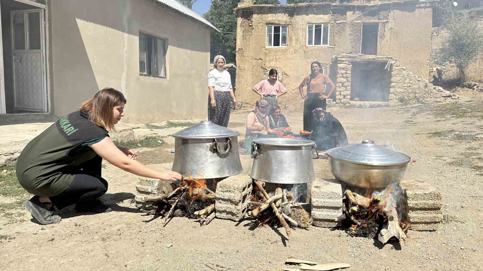 Hakkari’nin Yüksekova ilçesinde kadınlar kış hazırlıklarına başlarken, dışarıya kurulan kazanlarda salça ve menemen yapıldı.