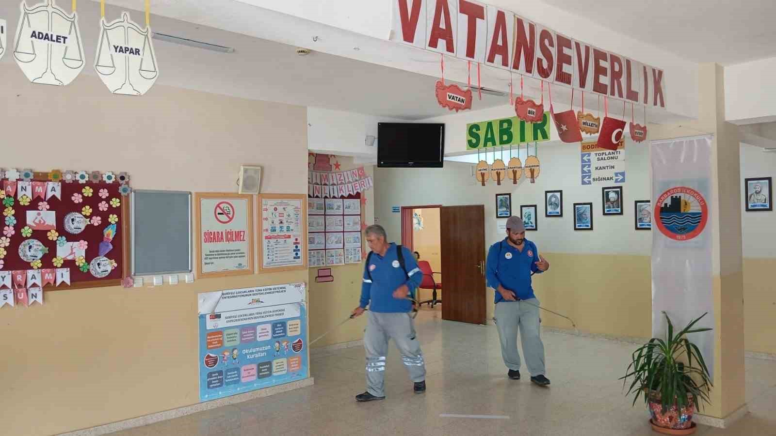 Yumurtalık Belediyesi, Adana Büyükşehir Belediyesi ile dayanışma halinde geçtiğimiz günlerde cadde, sokak, park, bahçe ve sahilleri didik didik edip her tarafı tertemiz yapan Yumurtalık Belediyesi ekipleri, bu kez okullarda ilaçlama ve temizlik çalışması yaptı.