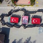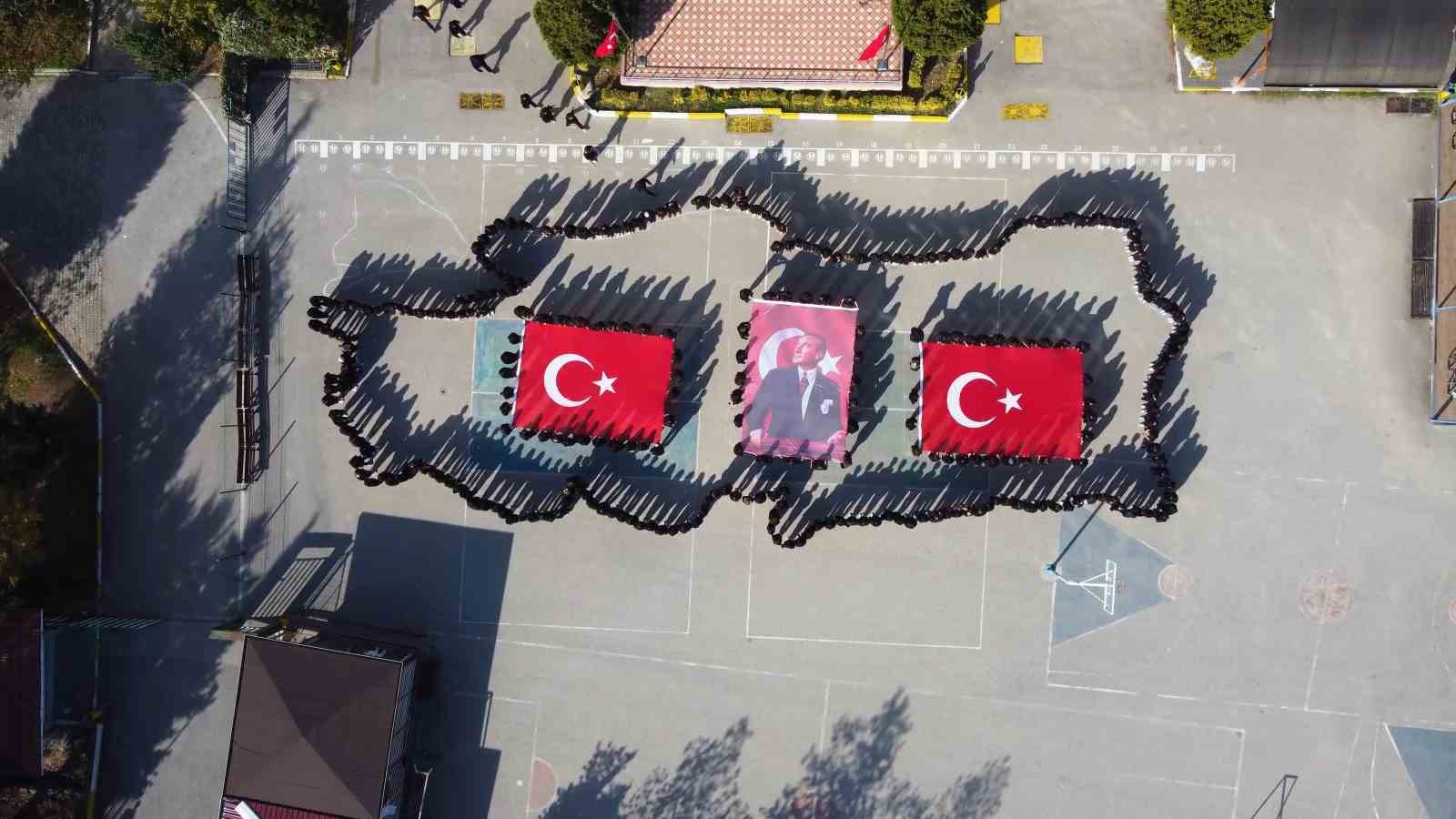 Bursa’da yüzlerce lise öğrencisi Cumhuriyetin 101.kuruluş yıldönümü sebebiyle Türkiye haritası oluşturdu, Türk Bayrağı ve Atatürk posteri açtı.