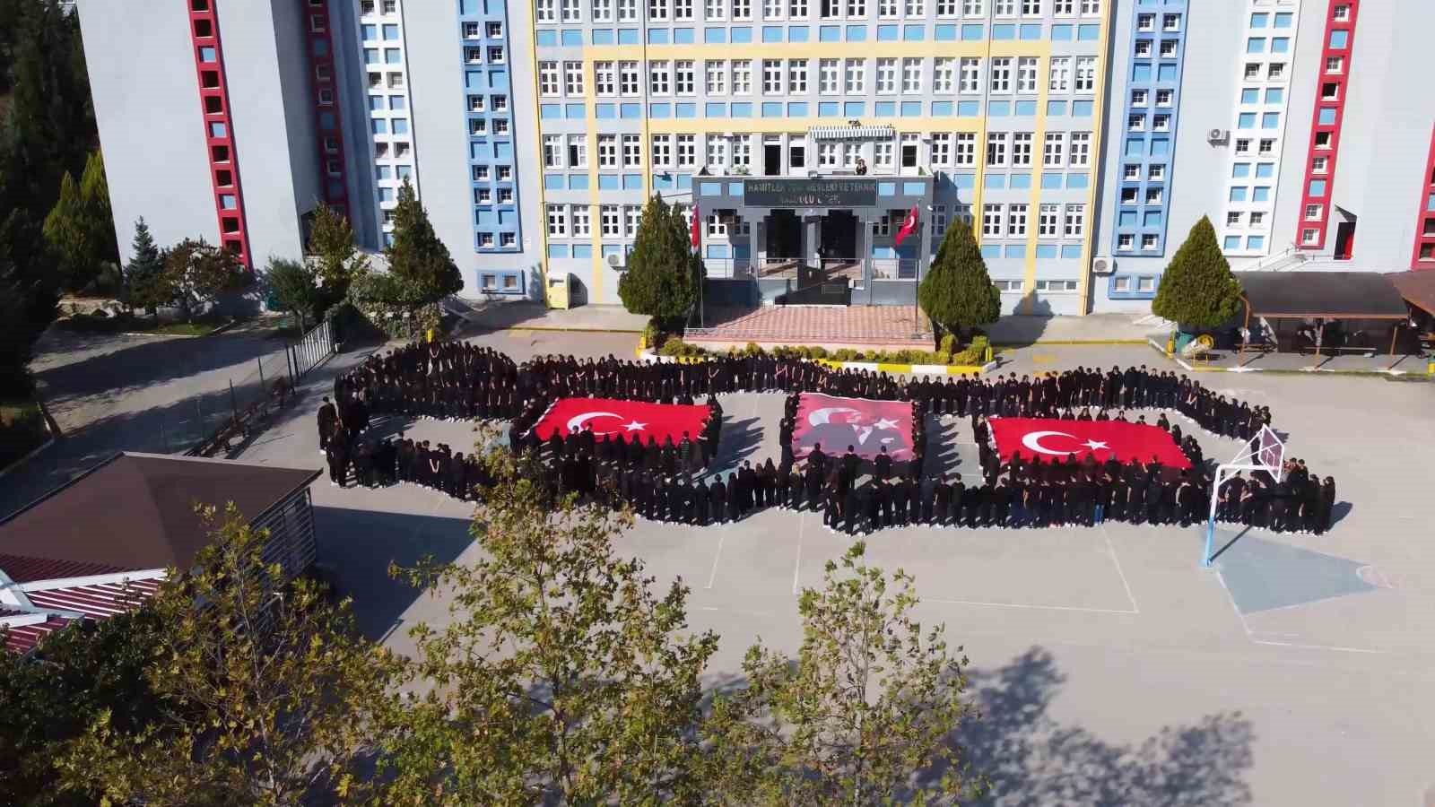 Hamitler TOKİ Mesleki ve Teknik Anadolu Lisesi öğrencileri, Cumhuriyet’in 101’inci yılına özel koreografi yaptı. Okulda eğitim gören yaklaşık 500 öğrenci, okul bahçesinde sıralanarak Türkiye haritasını oluşturdu. Harita ve içiresinde yer alan Atatürk posteri ve Türk Bayrağı dron ile görüntülendi.